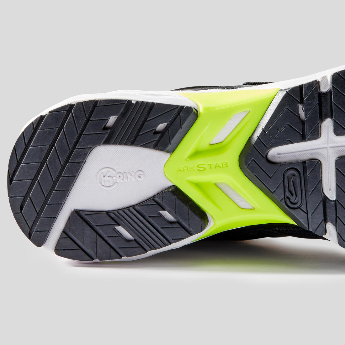 Une chaussure stable permet de faciliter le déroulé du pied et limiter les efforts de contrôle du pied et de la cheville afin d'avoir un appui relâché. Nous avons donc augmenté la surface d’appui du pied, intégré l'ARKSTAB, une pièce en résine TPU au milieu du pied et ajouté un renfort à l'arrière du talon.