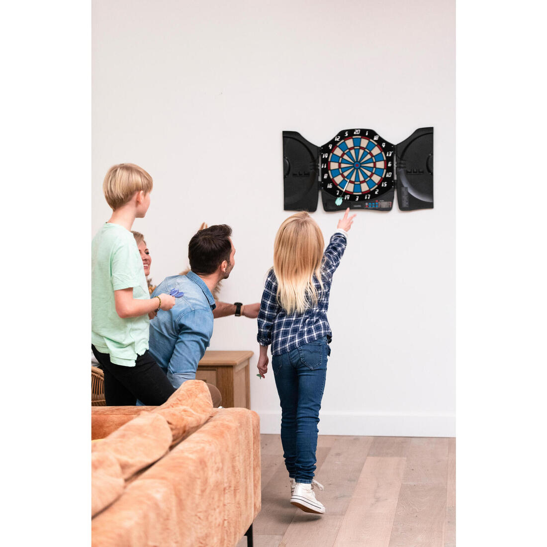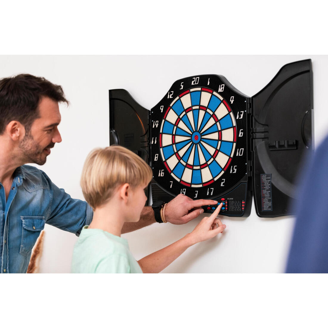 Conçu pour le joueur de fléchettes débutant cherchant une cible électronique facile, interactive avec des portes de rangement.