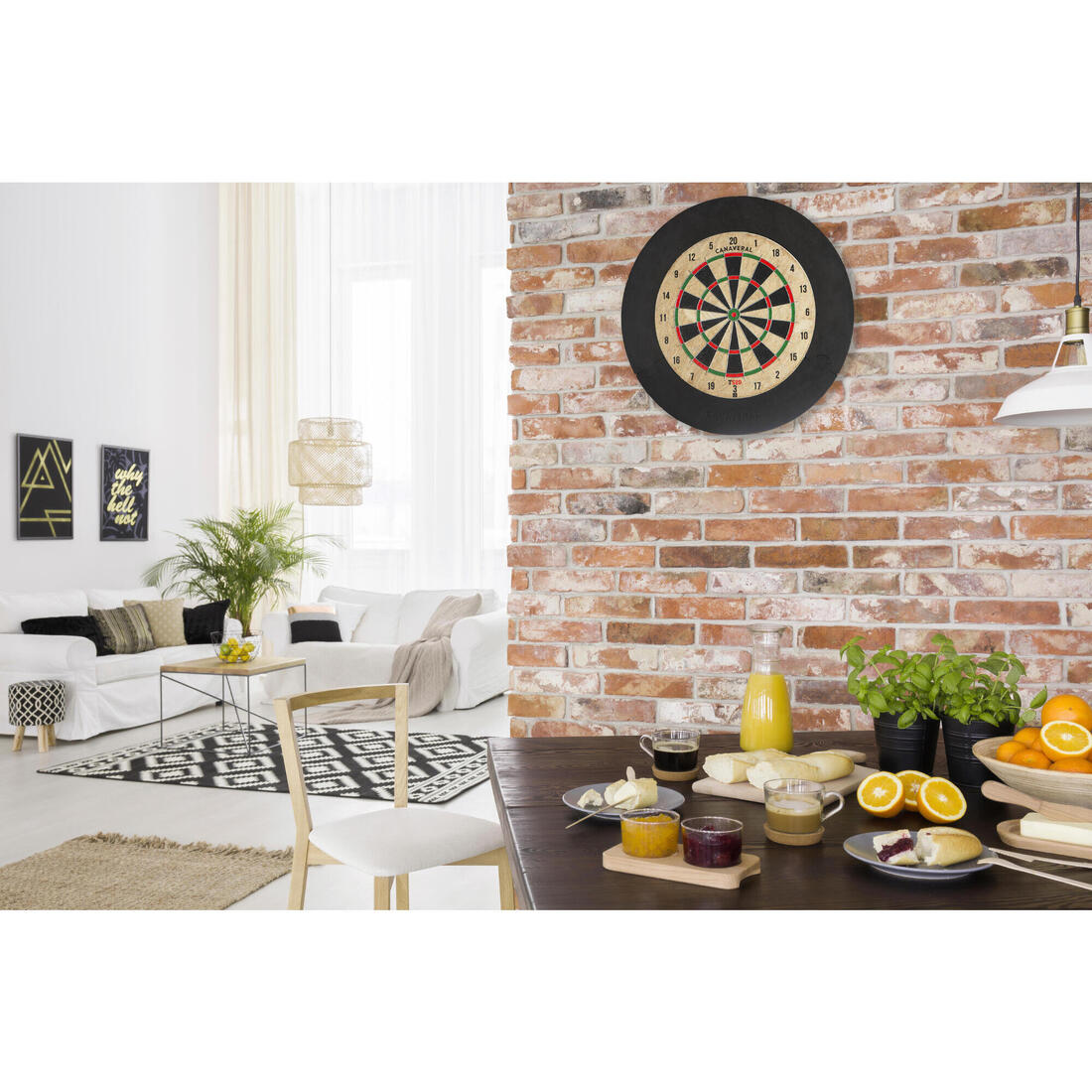Vous cherchez les sensations d'une cible de fléchettes de compétition pour la pratique à la maison? Cette cible en fibres naturelles, au design naturel et épuré est faite pour vous.