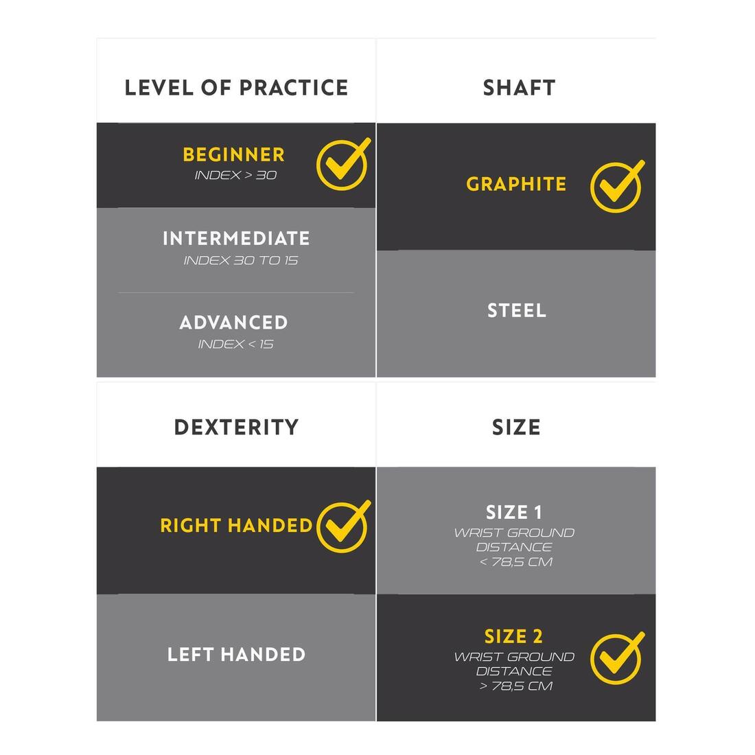 Fer à l'unité golf adulte droitier taille 2 graphite - INESIS 100