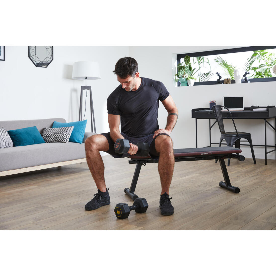 La forme de ce dumbbell hexagonal de 12,5 kg vous permet de combiner une multitude d'exercices pour vous raffermir et tonifier votre corps !