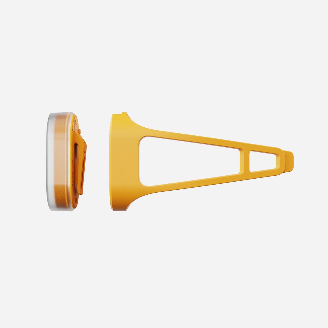 Cet éclairage a été conçue pour se fixer partout, ou presque. Vous pouvez la fixer sur vos vêtements, votre sac, vos chaussures et votre vélo grâce au strap en élastomère fourni. B'TWIN a développé de nombreux produits compatibles, comme des garde boue, des paniers, des casques... disposant d'emplacements spécialement prévus pour y fixer un éclairage clip. Pour augmenter vos possibilités, une interface autocollante 3M est également disponible sous la référence: 8771050
