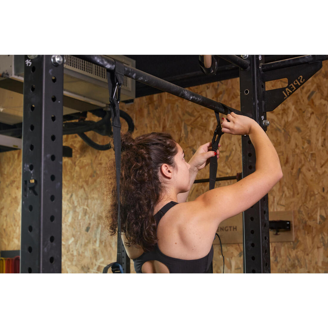 Le poids maximal supporté est de 130 kg. Faites vos tractions dans un espace bien dégagé : pour se sortir de l'élastique, il ne faut pas d'objets qui trainent au sol, par exemple. Vérifiez toujours que le produit est bien fixé avant de monter dessus. Assurez-vous par exemple que les mousquetons prennent bien la sangle.