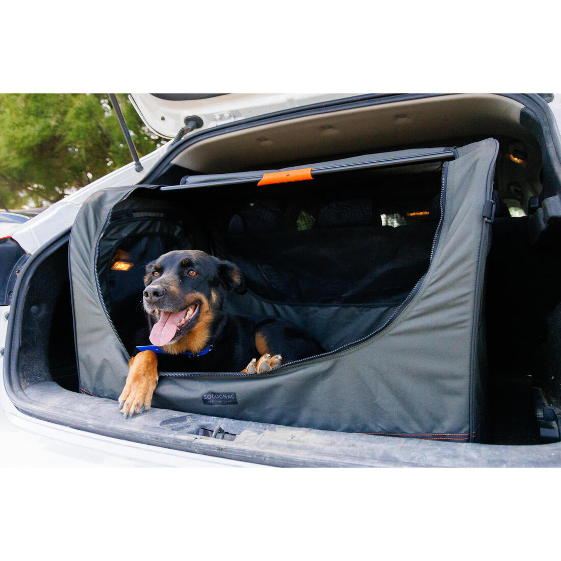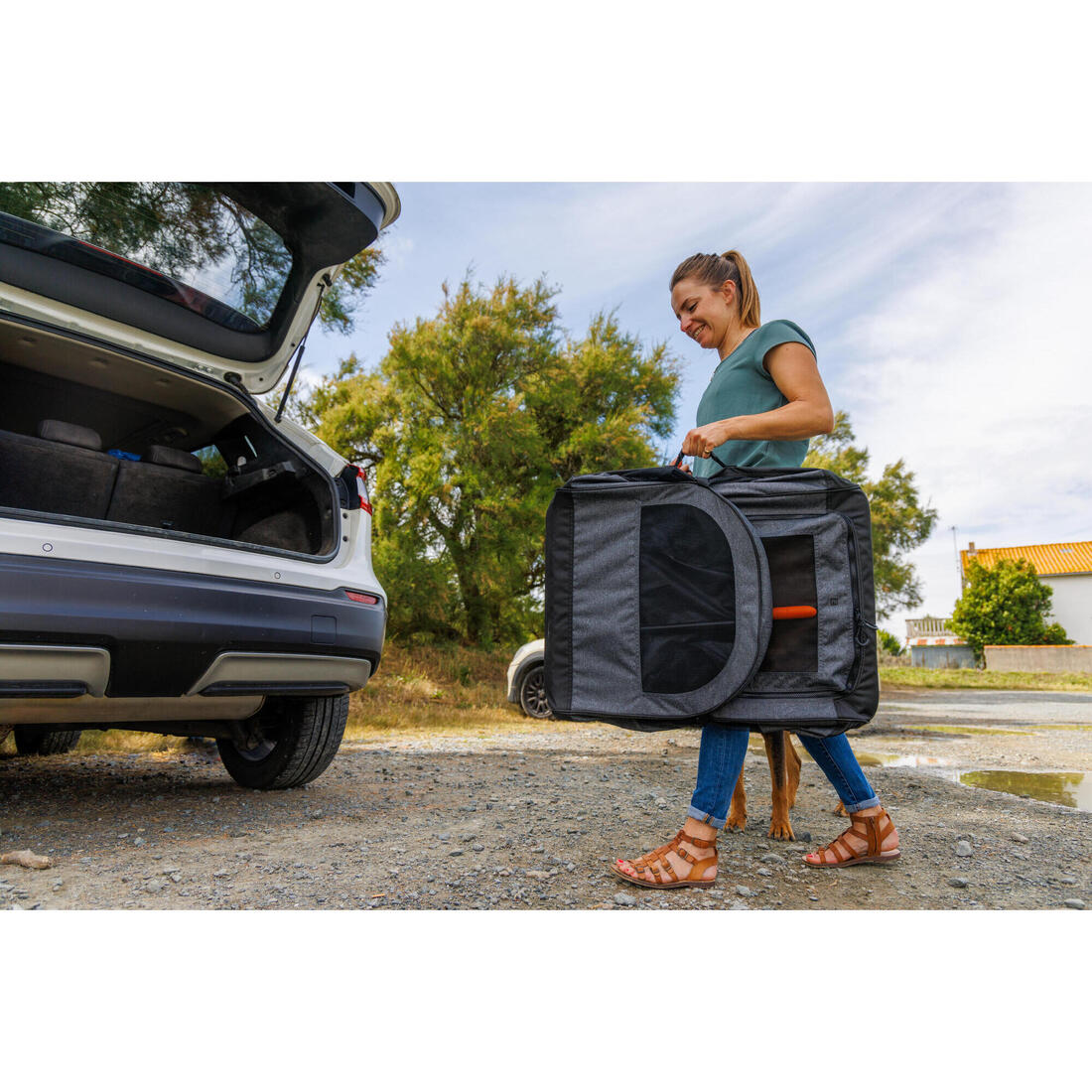 Pliable et dépliable en quelques secondes, cette caisse à chien est idéale pour les petits trajets en voiture. Moins encombrante qu'une caisse de transport rigide, elle fait aussi office de niche.