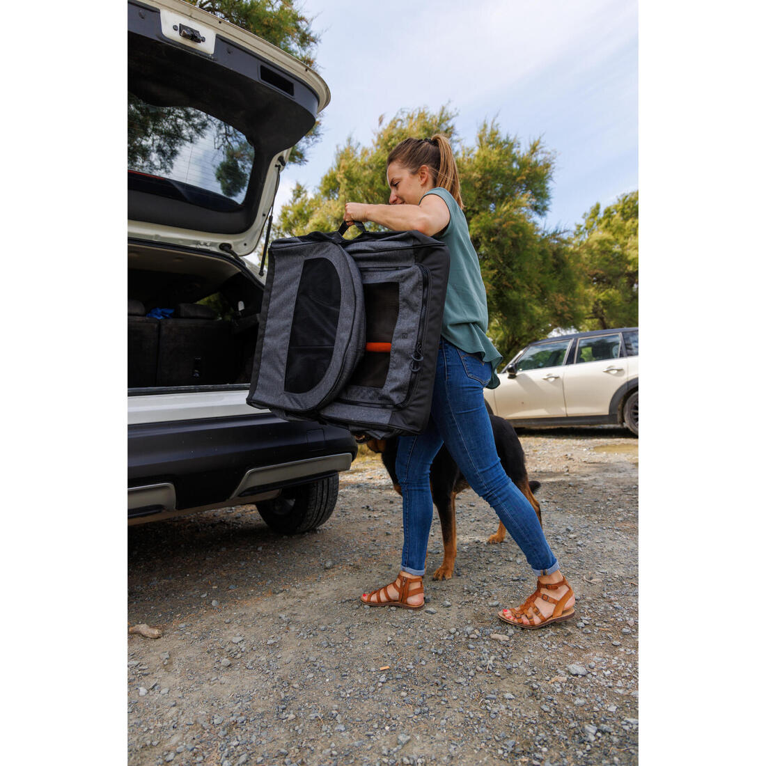 Caisse conçue pour transporter facilement votre chien. Pliable, légère et solide, l'animal dispose d'un espace confortable et sûr lors de vos déplacements.