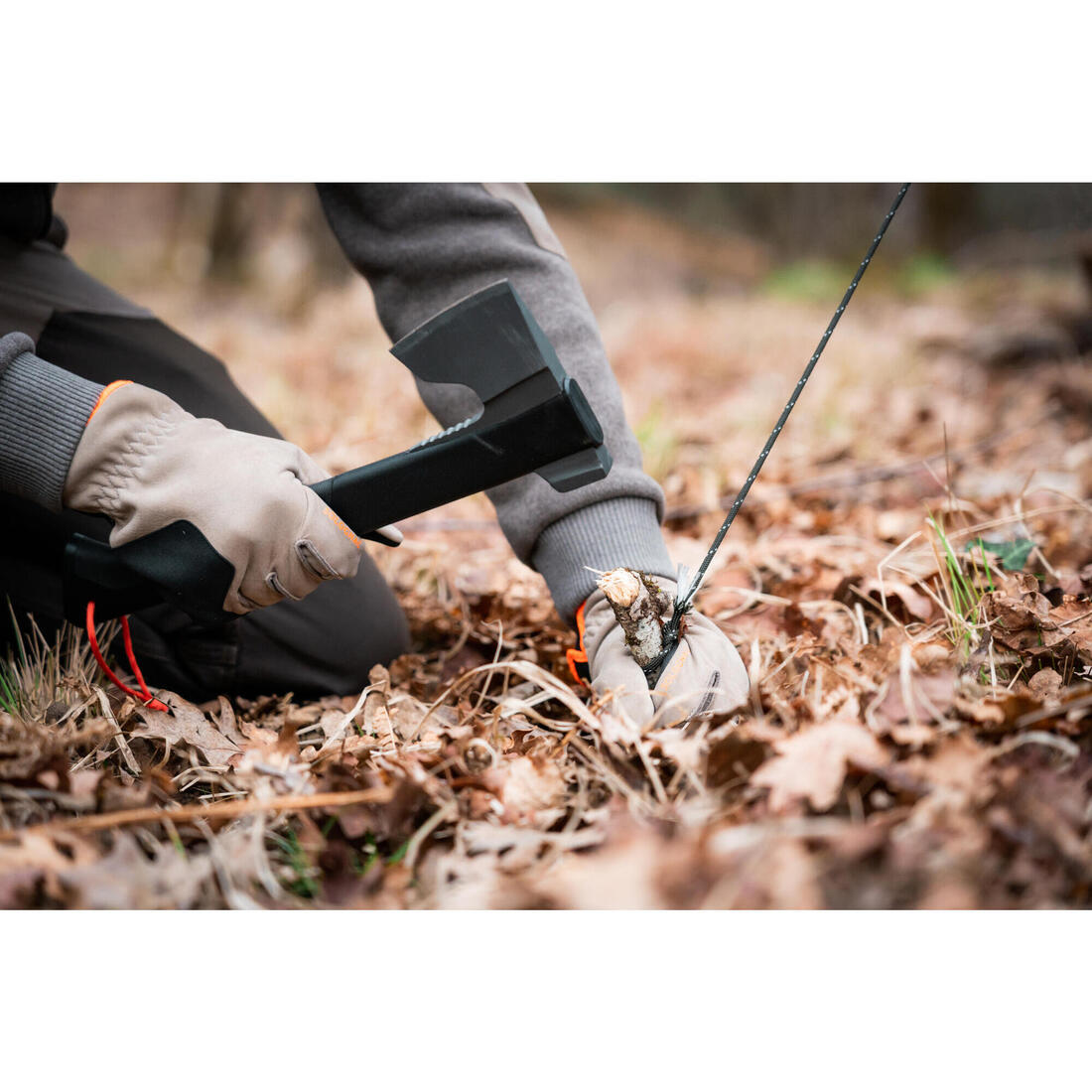 La hâche peut être tenue en prise éloignée pour de la coupe à la volée, 1 main ou 2 mains selon ses préférences. Elle peut aussi être tenue en prise serrée pour de la coupe de précision comme faire un hérisson ou de l'écorçage. Enfin, l'arrière de la tête peut être utilisé comme marteau, pour enfoncer des sardines fait maison par exemple. Nous avons choisi un poids de tête important pour privilégié une grande longueur de tranchant et un effet d'élan fort pour faciliter la coupe.