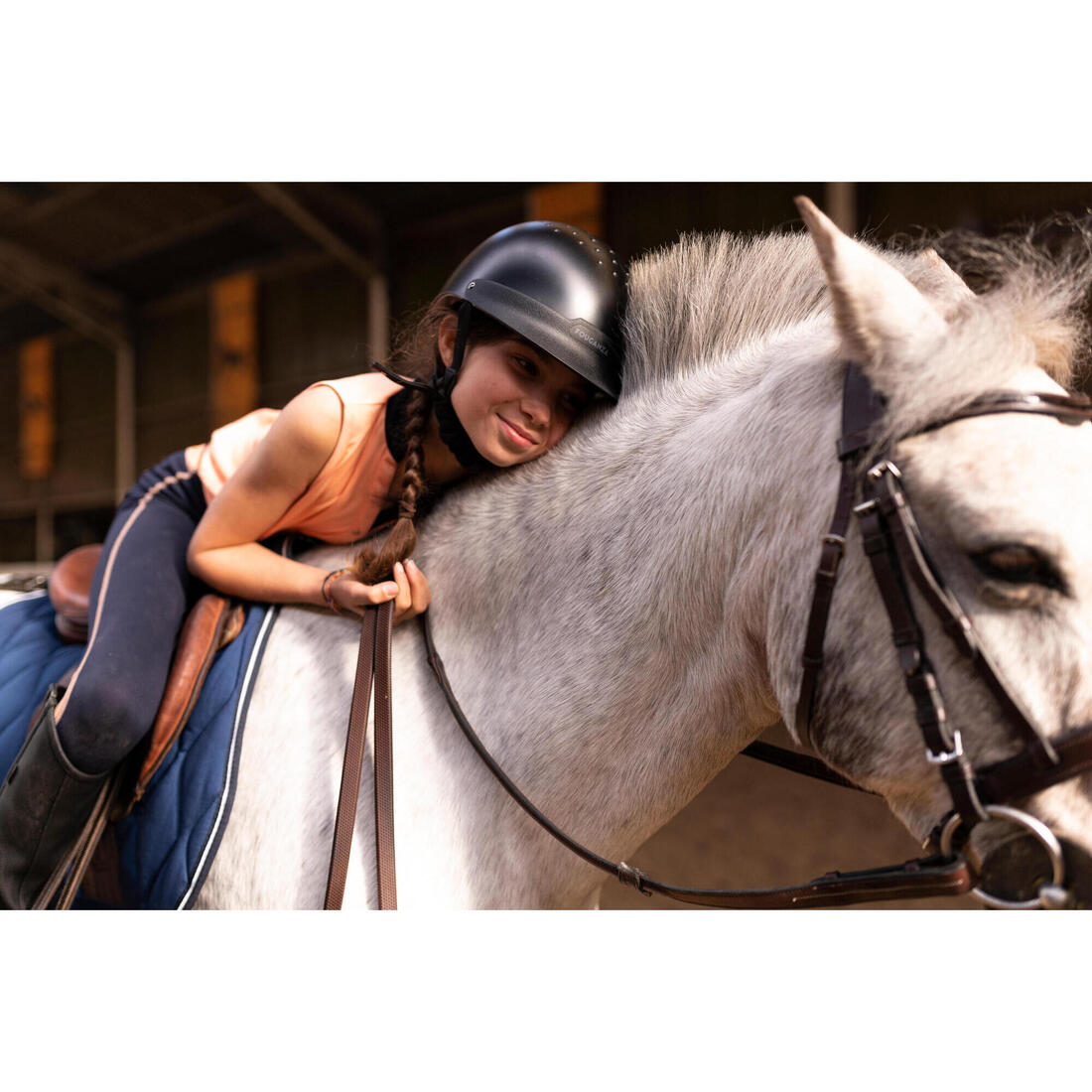 Vous démarrez à poney ou à cheval ? Optez pour notre casque 100, qui a l'avantage d'être confortable et facilement réglable grâce à sa mollette arrière. Un équipement optimal pour vous lancer.