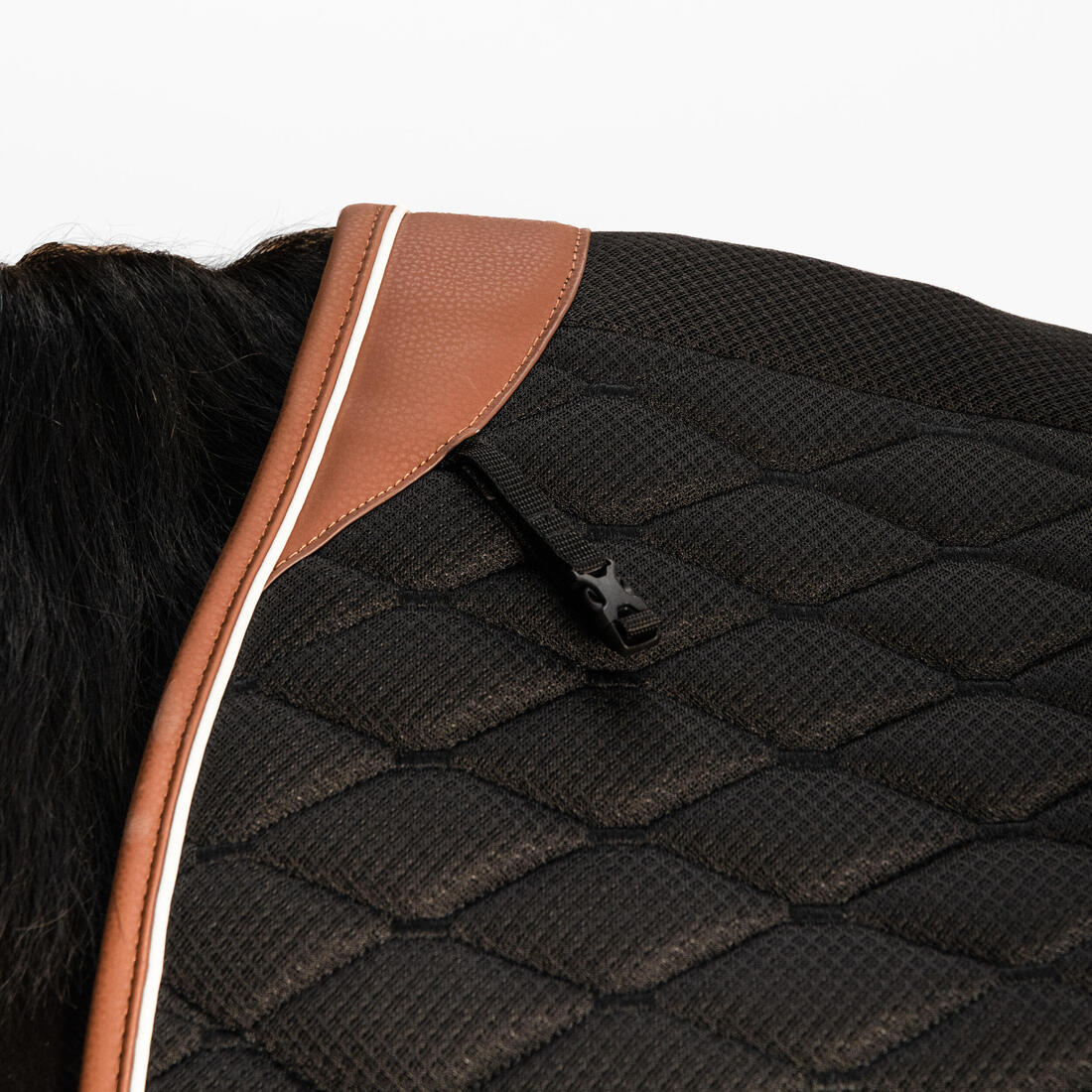 Nos concepteurs cavaliers ont développé ce tapis pour absorber la sueur de votre cheval et protéger son dos des pressions exercées par la selle.