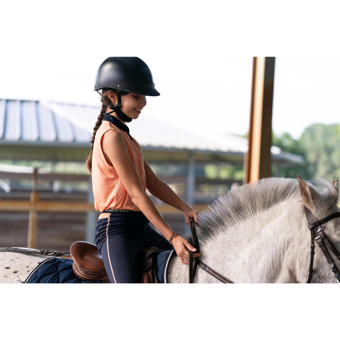 Vous démarrez à poney ou à cheval ? Optez pour notre casque 100, qui a l'avantage d'être confortable et facilement réglable grâce à sa mollette arrière. Un équipement optimal pour vous lancer.