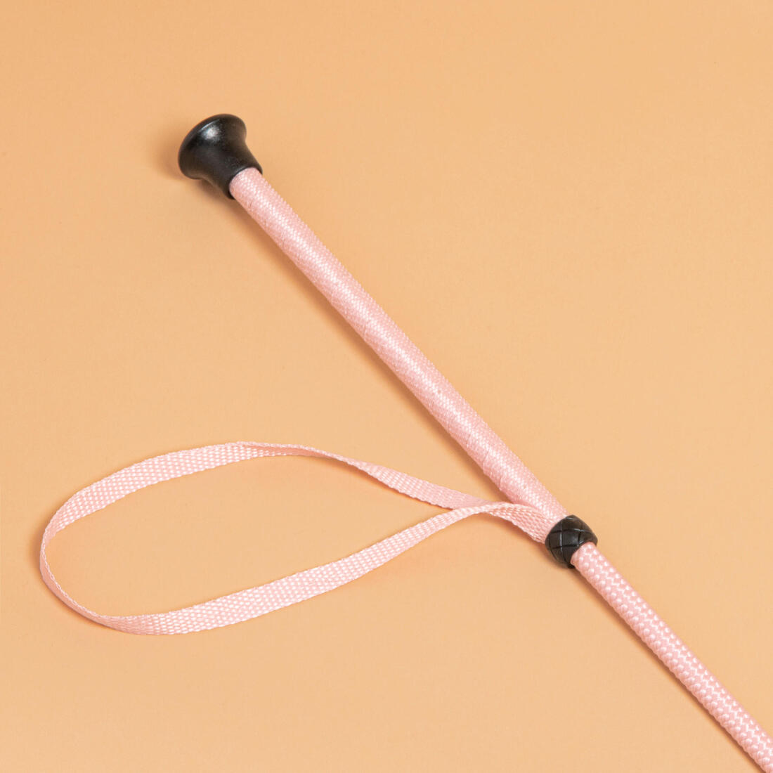 Cravache avec butée et dragonne fixe pour compenser l'absence de poignée.