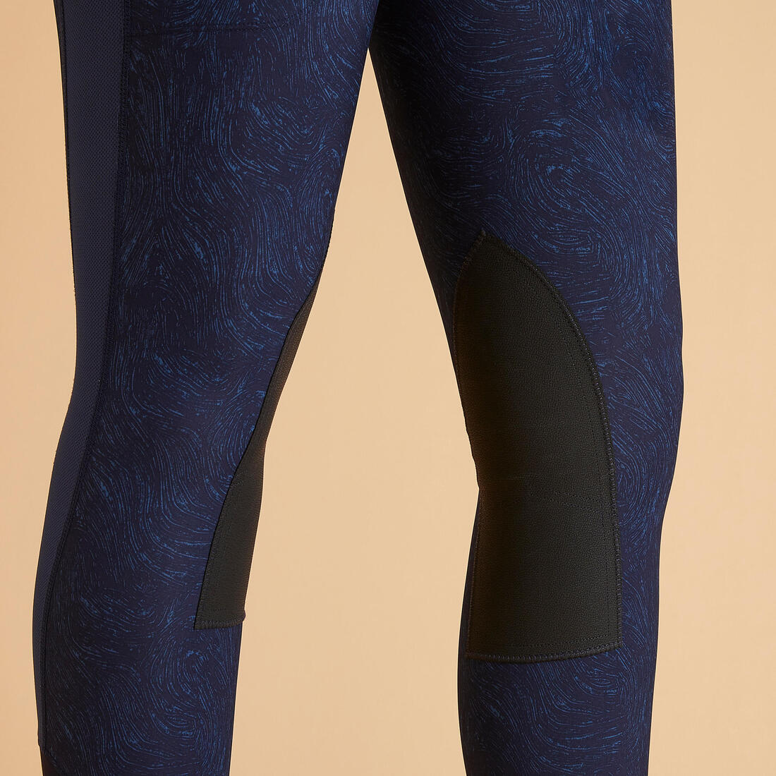 Grâce à son tissu très extensible, notre legging d'équitation 100 LIGHT a une coupe près du corps. Les zones en mesh favorisent l’aération et la large ceinture vous assure un bon maintien !