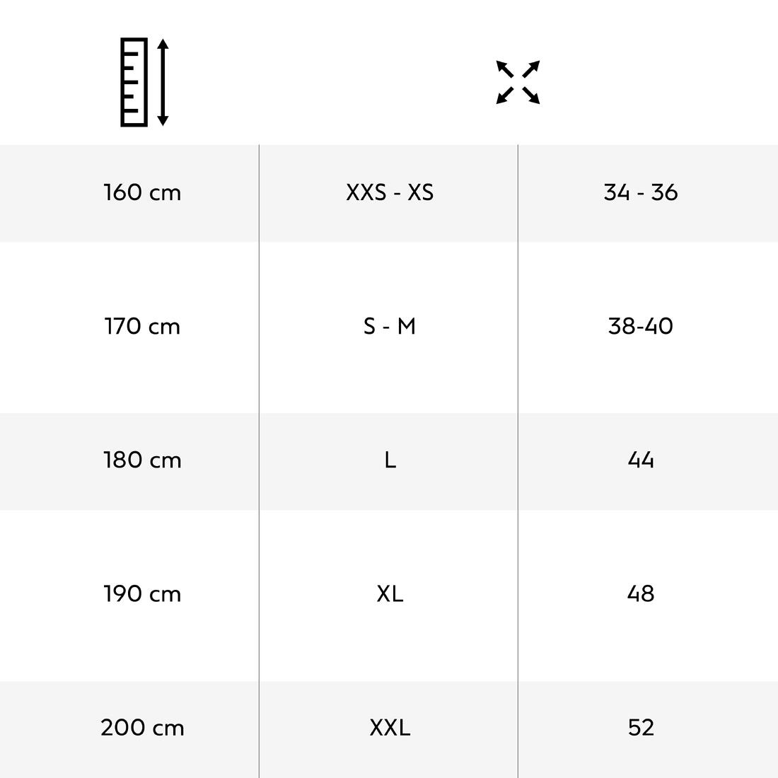 VTT (cm) | – | – | 140 – 154 | 150 – 164 | 165 – 174 | 175 – 184 | 185 – 200 |