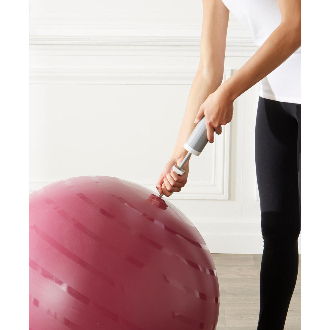 Afin de gonfler votre ballon correctement, vous aurez besoin : - d'une pompe (réf : 8214626, ou 8490986) - d'un mètre ruban pour mesurer le ballon Votre ballon est bien gonflé si : - d'une part, il ne dépasse pas son diamètre maximal (65cm pour la taille 2) - d'autre part, si vos genoux se positionnent bien à la même hauteur que vos hanches quand vous vous asseyez dessus.