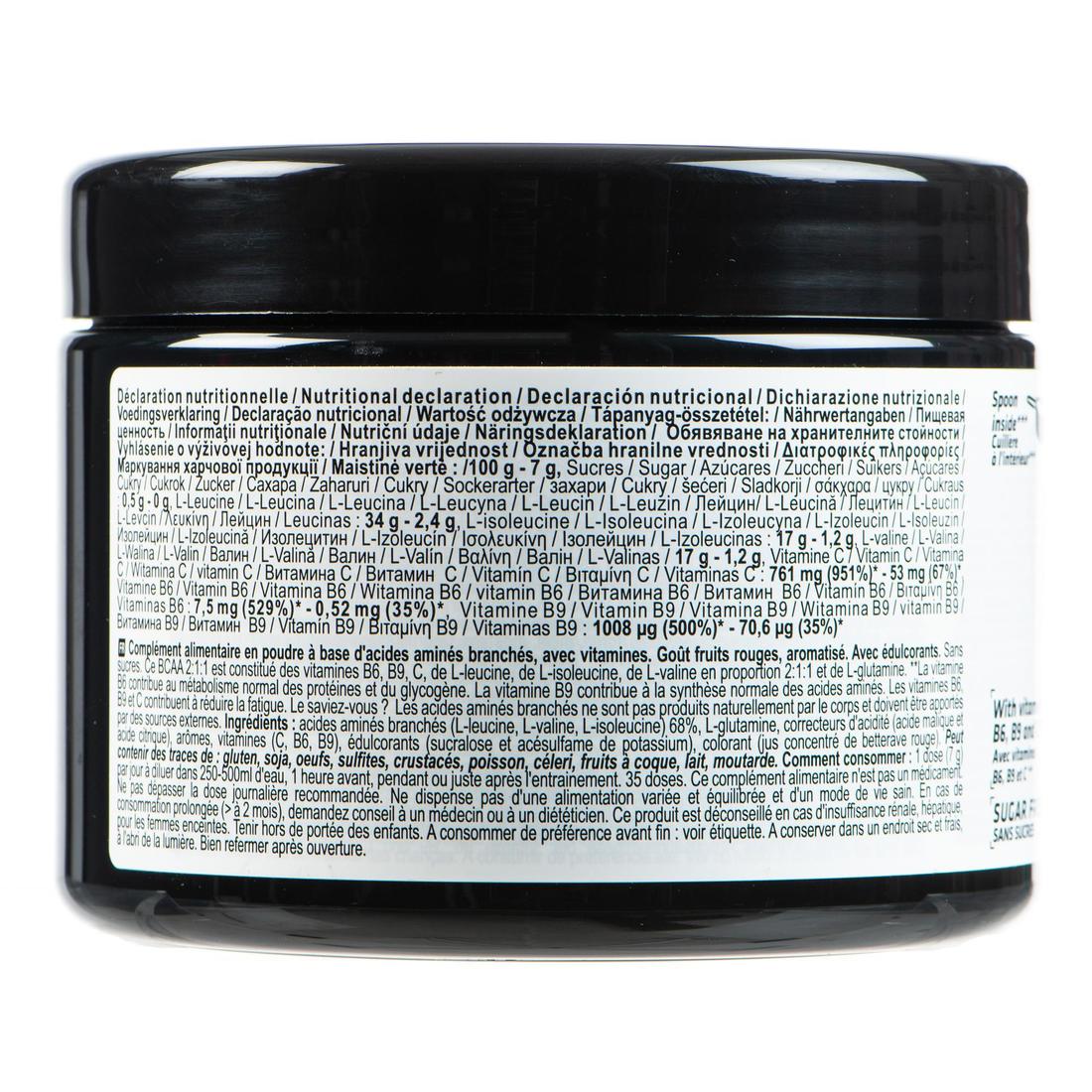 Complément alimentaire à base d’acides aminés branchés (BCAA) et vitamines. Les courbatures qui surviennent après l’effort sont le résultat d’une dégradation des fibres musculaires pendant celui-ci. Les acides aminés sont les éléments constitutifs des fibres musculaires. Spécialement élaboré à base de : Acides aminés branchés (BCAA), constituants majeurs des muscles : L-Leucine, L-Valine et L-Isoleucine ; ainsi que Glutamine, un autre acide aminé.