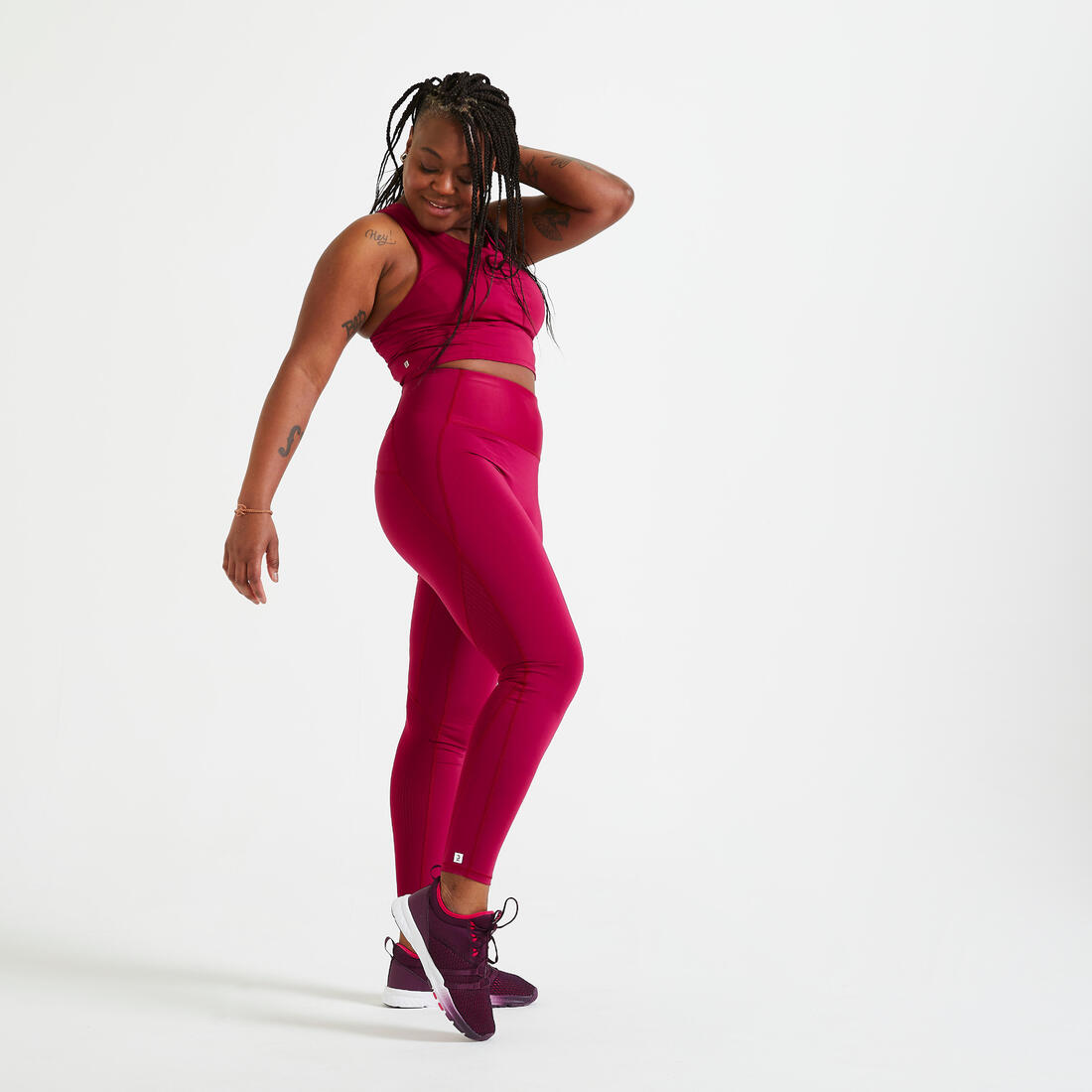 L'originalité de cette brassière est de coupler les avantages en termes de maintien d'une brassière et la coupe crop. Sur la brassière en première couche vient se poser un tissu en seconde couche pour créer un look crop top. Associée à un legging, elle permet de créer un look tendance et sportif.