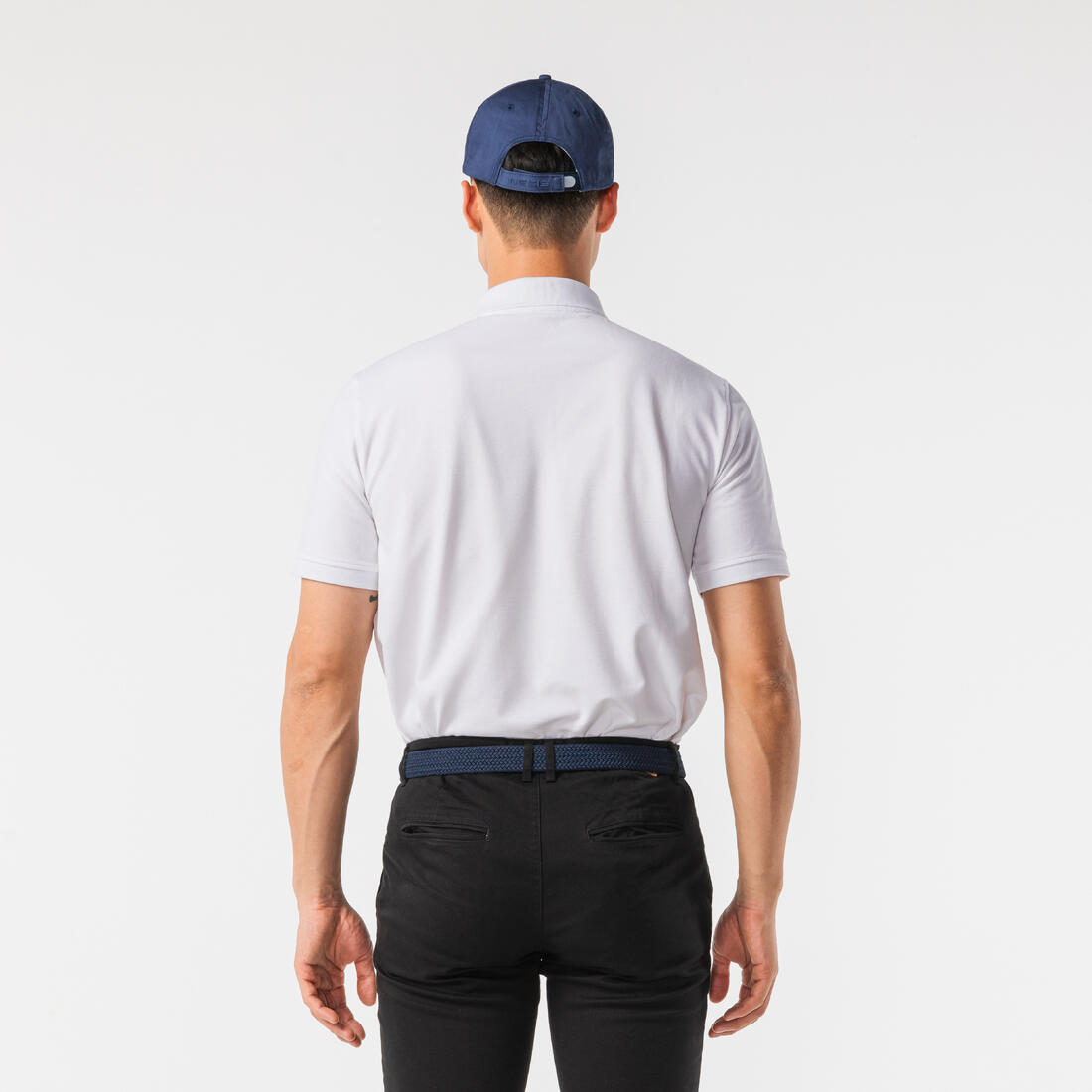 Cette casquette de golf Inesis MW500 possède une visière avec une taille et une forme étudiées pour la pratique du golf, qui ne gêne pas la visibilité lors du swing tout en protégeant votre tête du soleil. Une bande de propreté d'une matière respirante et moussée entoure la tête afin de bloquer la transpiration pour qu'elle ne coule pas dans les yeux. Enfin, une bande en scratch à l'arrière permet un réglage facile de la taille, et améliore le confort et le maintien.