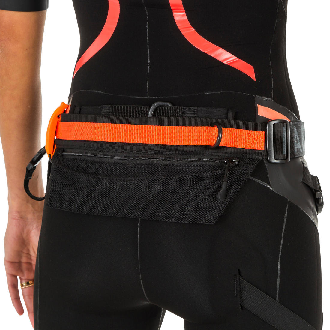 La ceinture de swimrun pour accrocher votre longe élastique de binôme avec poche arrière pour le ravitaillement. Une boucle permet aussi d'accrocher vos accessoires comme lunettes et plaquettes.