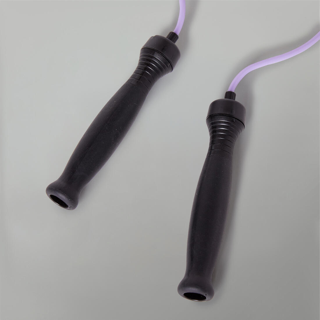 Son ergonomie et sa matière adhérente en gomme permettent une bonne préhension de la poignée. L'ajusteur permet d'adapter la longueur de la corde au pratiquant.