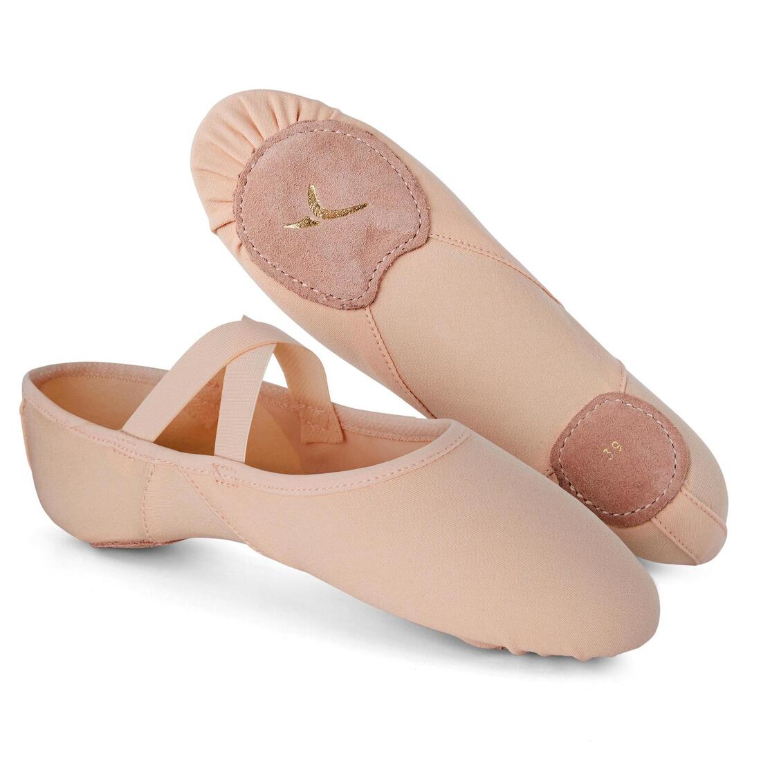 Demi-pointes danse classique bi-semelles en toile stretch saumon tailles 41-42