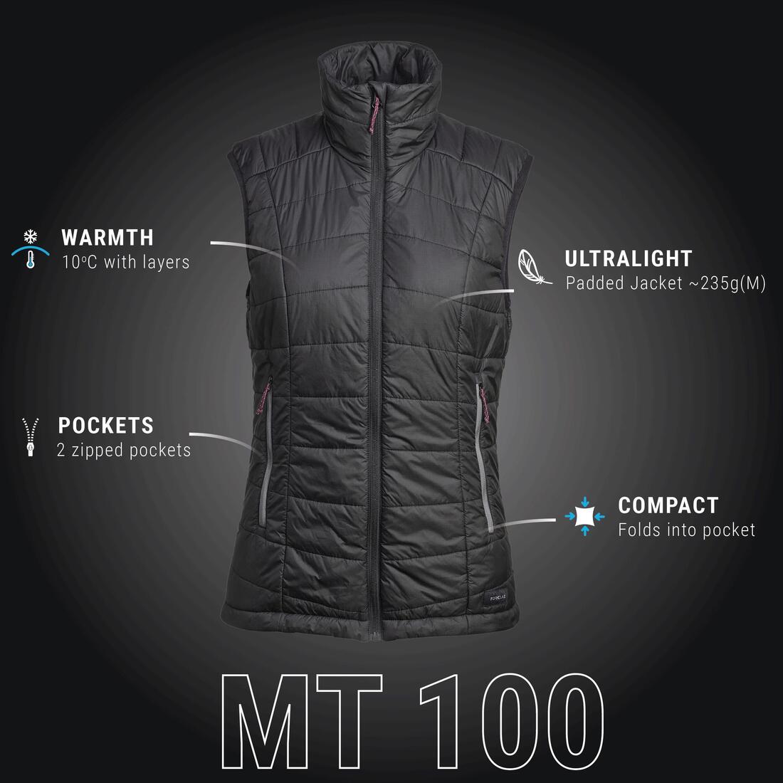 Doudoune de trek sans manches synthétique Femme, MT100