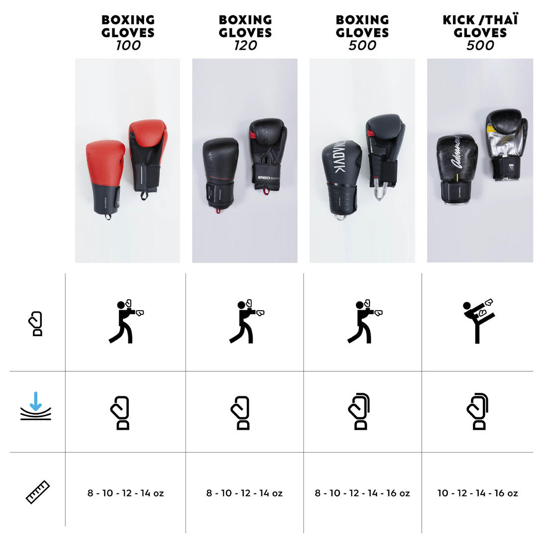 Afin d'être adaptés à votre main, les gants de boxe sont disponibles en plusieurs tailles. Ces tailles sont liées à votre gabarit plus qu'à votre taille de main. Femme : De 45 à 55kg -> 10oz. De 55 à 65kg -> 12oz. De 65 à 75kg -> 14oz. > 75kg ->16oz. Homme: De 35 à 55kg -> 8oz. De 55 à 65kg -> 10oz. De 65 à 80kg -> 12oz. De 80 à 95kg -> 14oz. > 95kg -> 16oz.