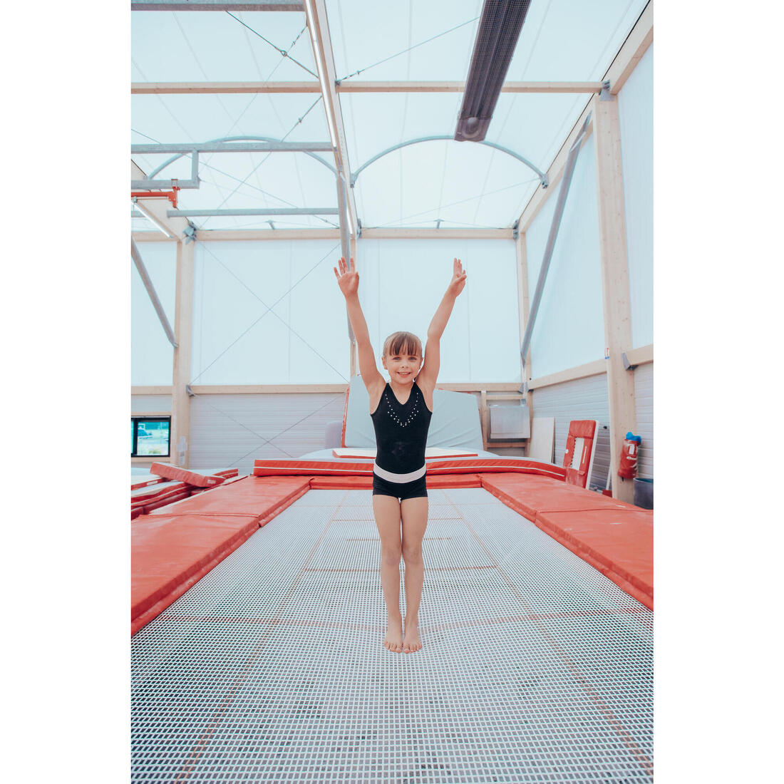 Le conseil de notre équipe conception : le parfait équipement de la gymnaste en entraînement sera un justaucorps sans manche ou un débardeur ainsi qu'un short ou un legging. Cela lui permettra d'effectuer ses éléments de gymnastique en toute confiance et liberté afin de pouvoir mettre un pied par la suite sur les plateaux de compétition.
