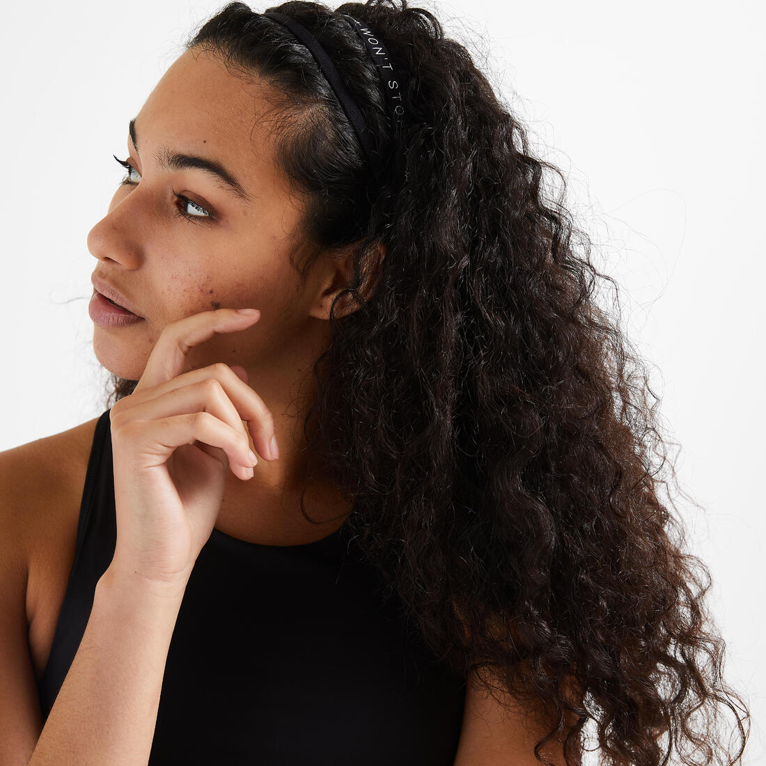 Une bande en silicone en-dessous pour maintenir vos cheveux en place pendant votre pratique