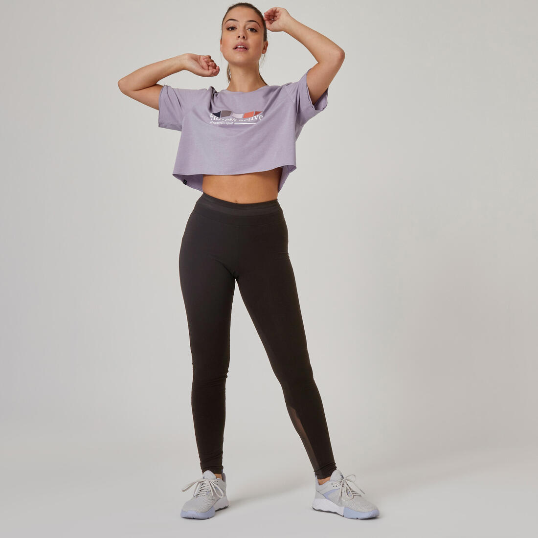 Legging Coton Extensible Fitness Taille Haute avec Mesh Violet