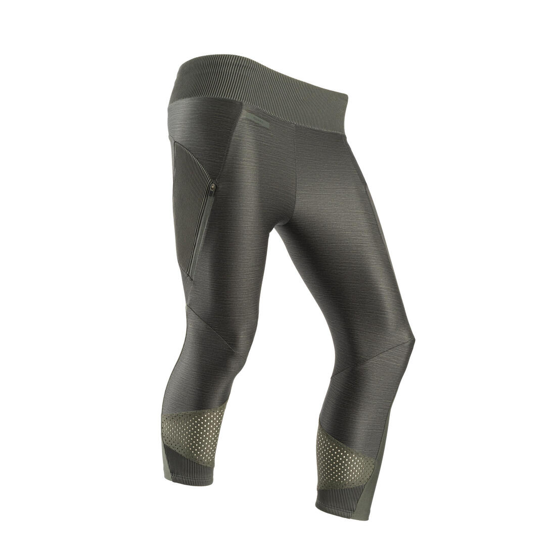 Effet seconde peau : sans couture entre jambes et matière douce et légère! 2 poches zippées (au dos et sur le côté) Aérations au niveau des genoux pour faire circuler l'air Existe en legging long