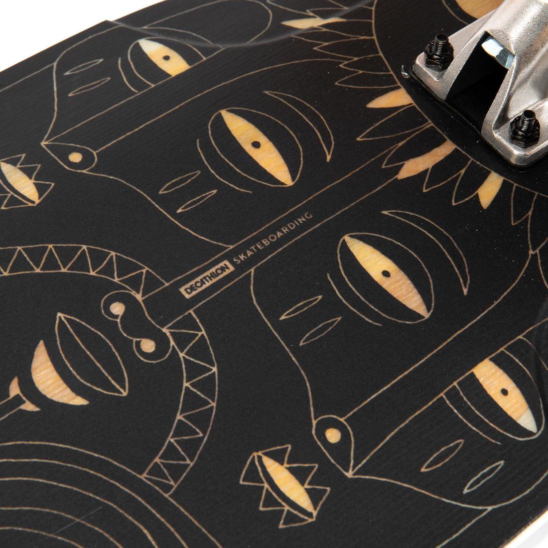 Dimensions : 112 CM X 24 CM Composition : - Planche en composite Bois (peuplier) / Fibre de verre triaxiale - Renfort fibre biaxiale nose et tail - Renfort du contour de la planche (sidewall) en TPU - Colle Epoxy Flex : 3/5 Grip découpé sur nose, tail et bordure. Sans grip au centre de la planche pour faciliter les déplacements des pieds.