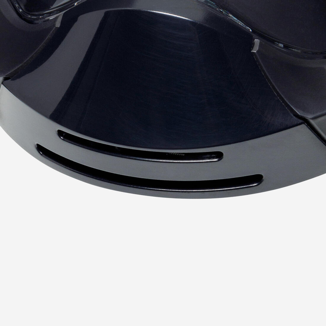 - Prenez le tuba dans votre main et déplacez-le de gauche à droite. La bille doit suivre le mouvement sans contrainte - Vérifiez la présence, l'état et la bonne position du joint - Vérifiez que toutes les valves sont présentes, qu'elles ne sont pas déformées et qu'elles sont bien plaquées contre leur support - Vérifiez l’assemblage global du masque et qu'il n'y a pas de défaut sur l'assemblage de la jupe sur le cadre et la vitre - Ne jamais utiliser le masque sans le tuba