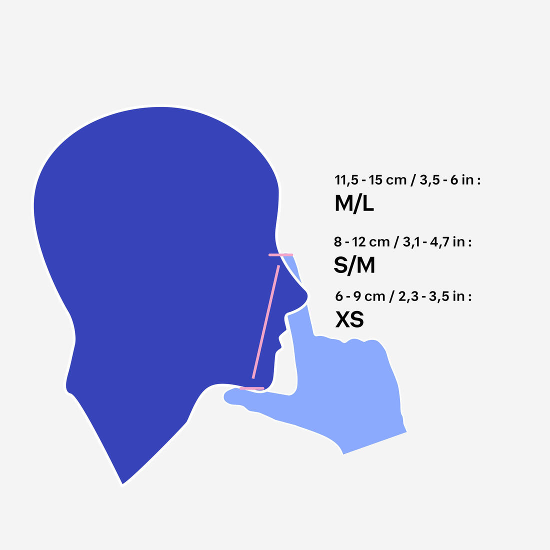 Le masque Easybreath d'immersion Adulte - 900 existe en 2 tailles et couvre ainsi 90 % des visages adultes. A partir de 12 ans et pour les petits visages optez pour la taille S/M et pour les plus grands visages : la taille M/L. Pour bien choisir sa taille en magasin, serrez le masque sur votre visage : il ne doit pas y avoir d’espace entre votre menton et le bas du masque.