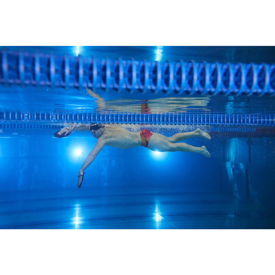 PLAQUETTES DE NATATION 900 XL NOIR ROUGE