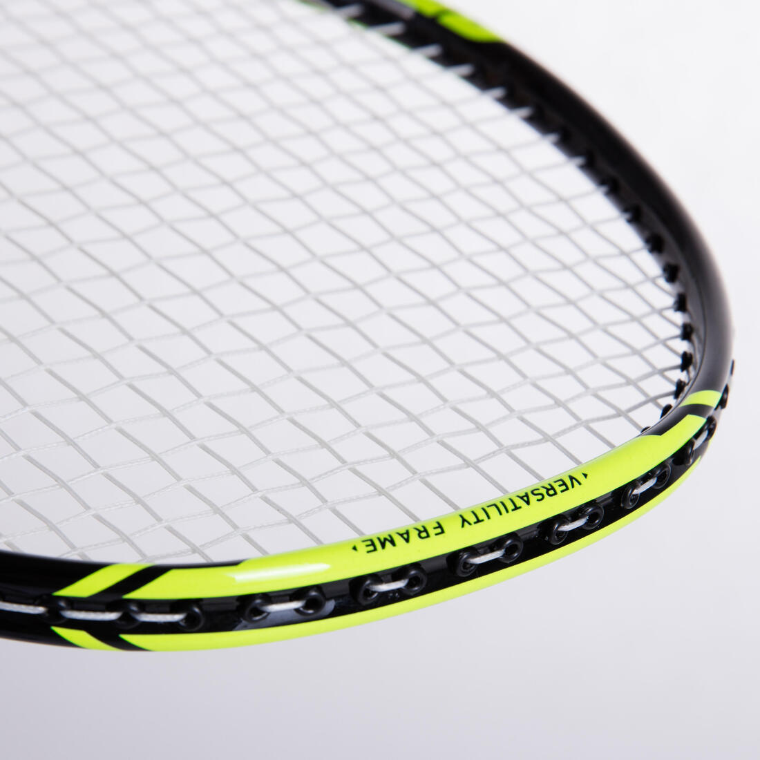 Cette raquette de badminton est idéale pour vos premiers échanges. Son cadre isométrique très résistant en acier et aluminium tolère mieux vos erreurs de centrage.
