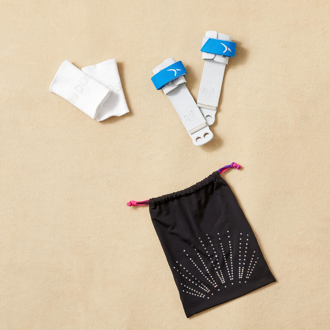 Nous avons conçu ce sac pour la gymnaste tout niveau qui souhaite ranger ses accessoires : maniques, poignets éponge, chaussons, demi-pointes et/ou justaucorps.