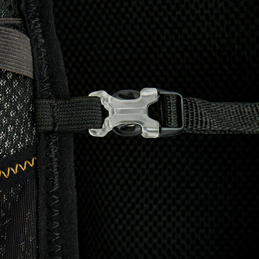 Les sifflets de sécurité et les poches à eau font partie de l'équipement obligatoire en trail. Alors pour faciliter votre préparation, ils sont déjà inclus dans votre sac Trail 5 l !! Le sifflet de sécurité, d'un volume de 110 décibels, se trouve dans la petite poche poitrine, toujours à portée de votre bouche. La poche à eau dispose d'un volume d'un litre, ce qui vous apporte, en moyenne, deux heures d'autonomie entre les ravitaillements.