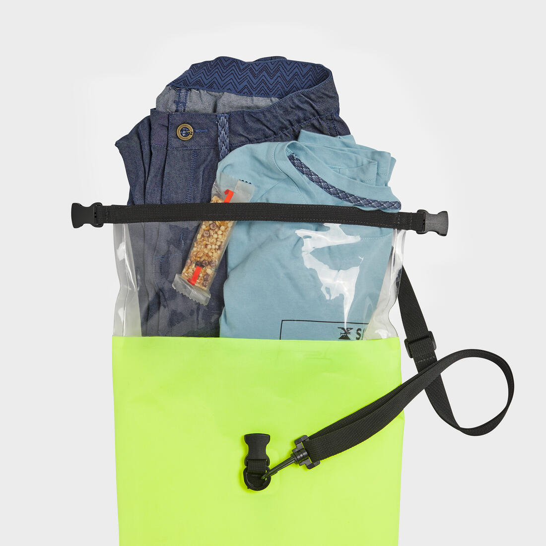 Très pratique par sa contenance de 10L et son étanchéité IPX7. Il protège vos affaires d'une immersion jusqu'à 1m pendant 30 min. Il est fournis avec une bretelle de transport.