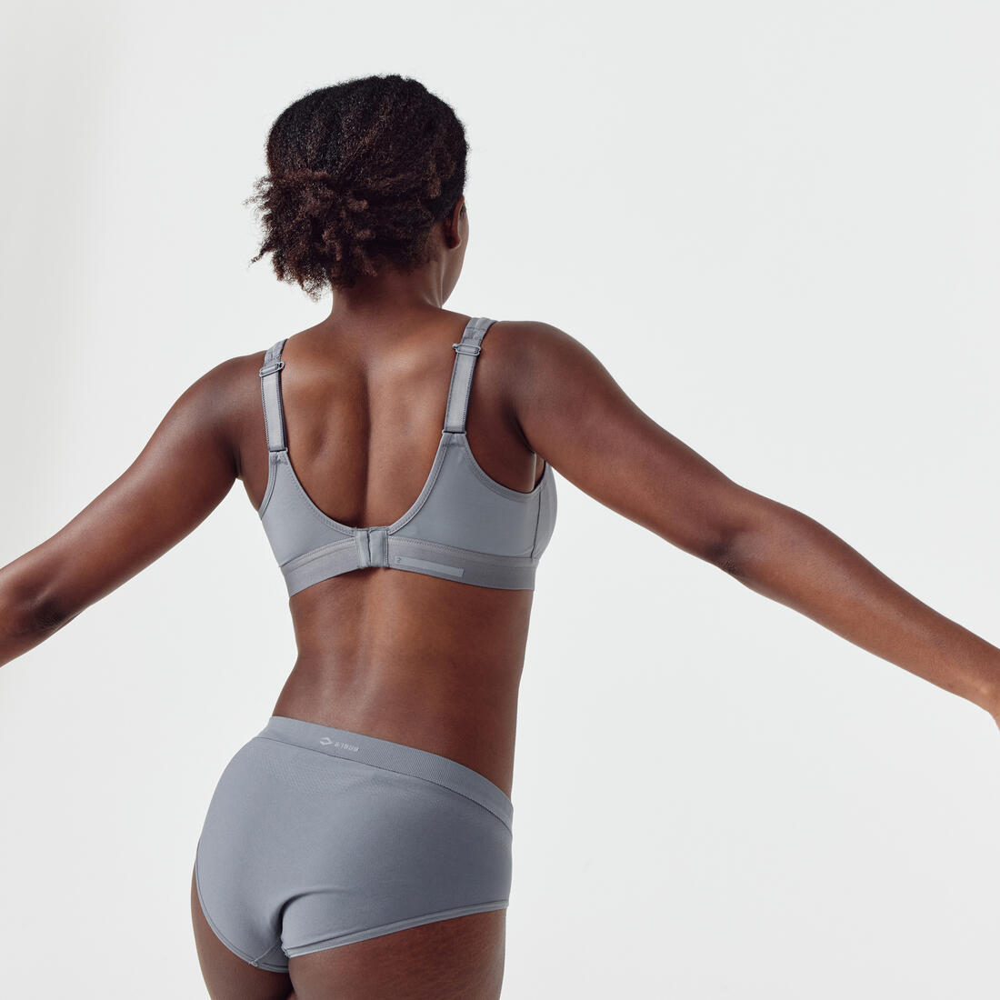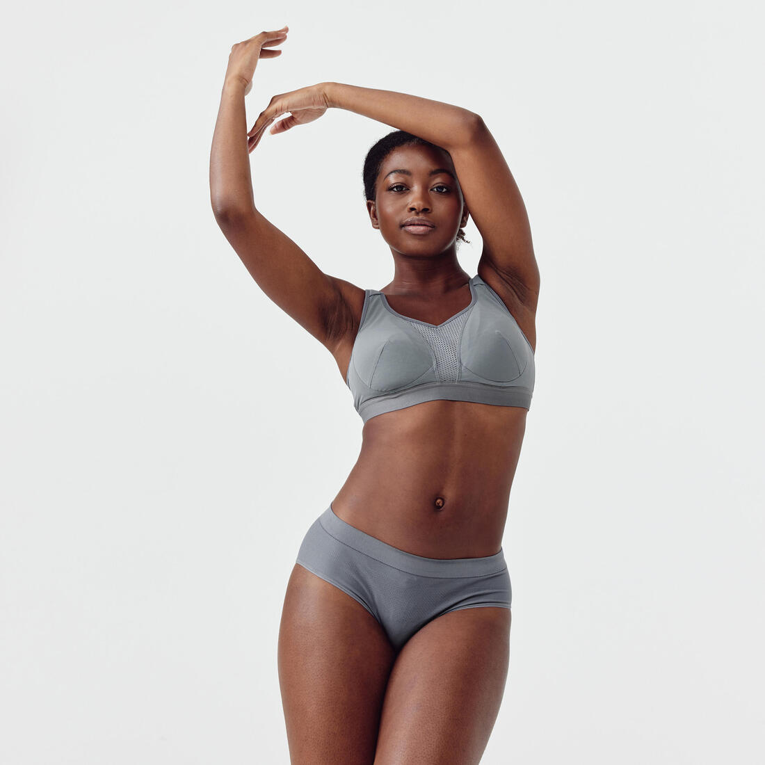 Les brassières Decathlon, conçues par notre équipe de sportifs, visent à maximiser le confort et à prévenir les problèmes de santé. Pour réduire les risques de blessures et de compression des ganglions, nous évitons l'utilisation d'armatures. Nous minimisons aussi les coutures au niveau du mamelon pour prévenir les irritations. Enfin, l'intégration de composants favorisant l'évacuation de la transpiration assure votre confort tout en réduisant significativement les risques d'irritation cutanée.