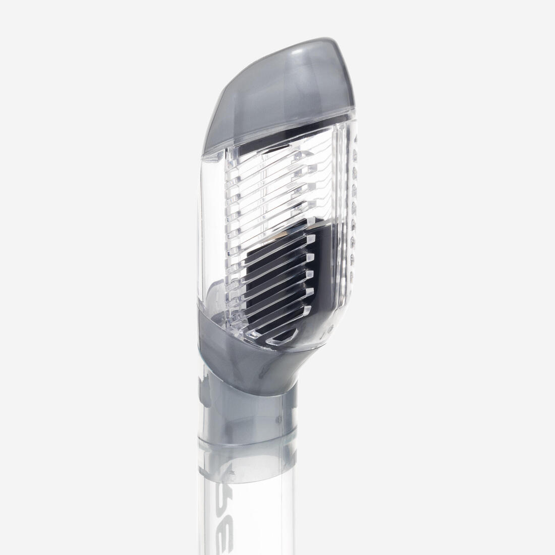 Système "dry-top" évitant les entrées d'eau par le haut du tuba pendant l'apnée.
