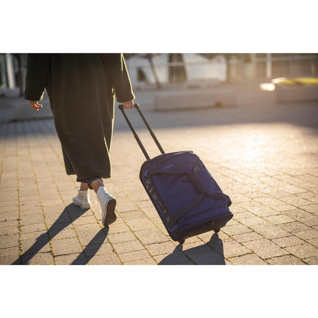 Ce sac à roulettes au format cabine a été conçu conformément aux normes IATA et peut être emmené à bord d'un avion. Nous te recommandons de te rapprocher de ta compagnie aérienne afin d'obtenir le détail des restrictions de tailles et de poids en vigueur concernant les bagages cabine.