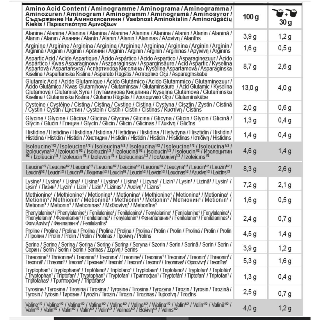 Tableau nutritionnel : POUR 100 g | PAR PORTION DE 30 g Energie: 378 kcal | 113 kcal Energie: 1603 Kj | 481 Kj Matières grasses: 3,1 g | 0,9 g dont acides gras saturés: 1,6g | 0,5 g Glucides: 17 g | 5,1 g dont sucres: 8,0 g | 2,4 g Protéines: 70 g | 21 g Sel: 1,0 g | 0,30 g