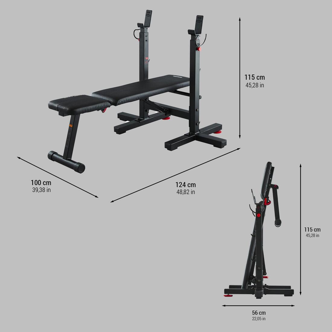 Dimensions et poids du banc de musculation avec chandelles pliables