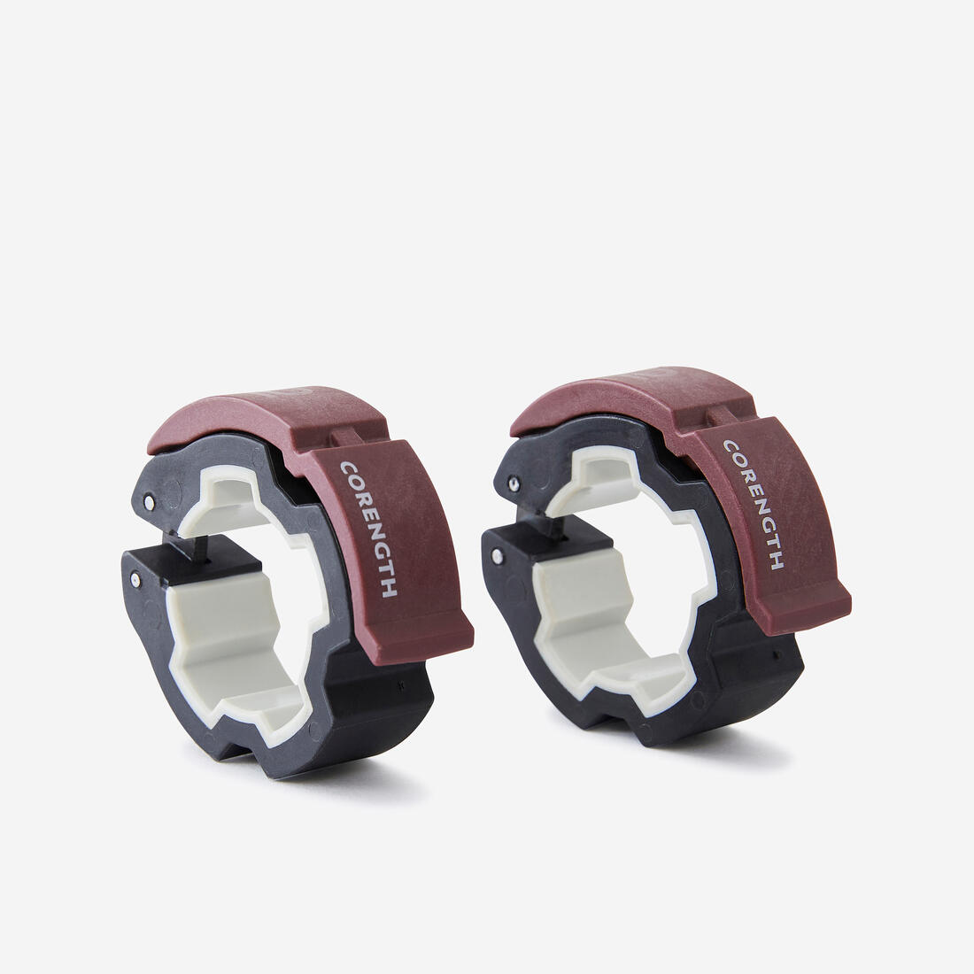 Les stop disques doivent être systématiquement installés sur l'haltère après l'avoir chargée. Attention, ils ne supportent pas plus de 15kg en prise marteau (à la verticale). Poids maximum par barre : 30kg