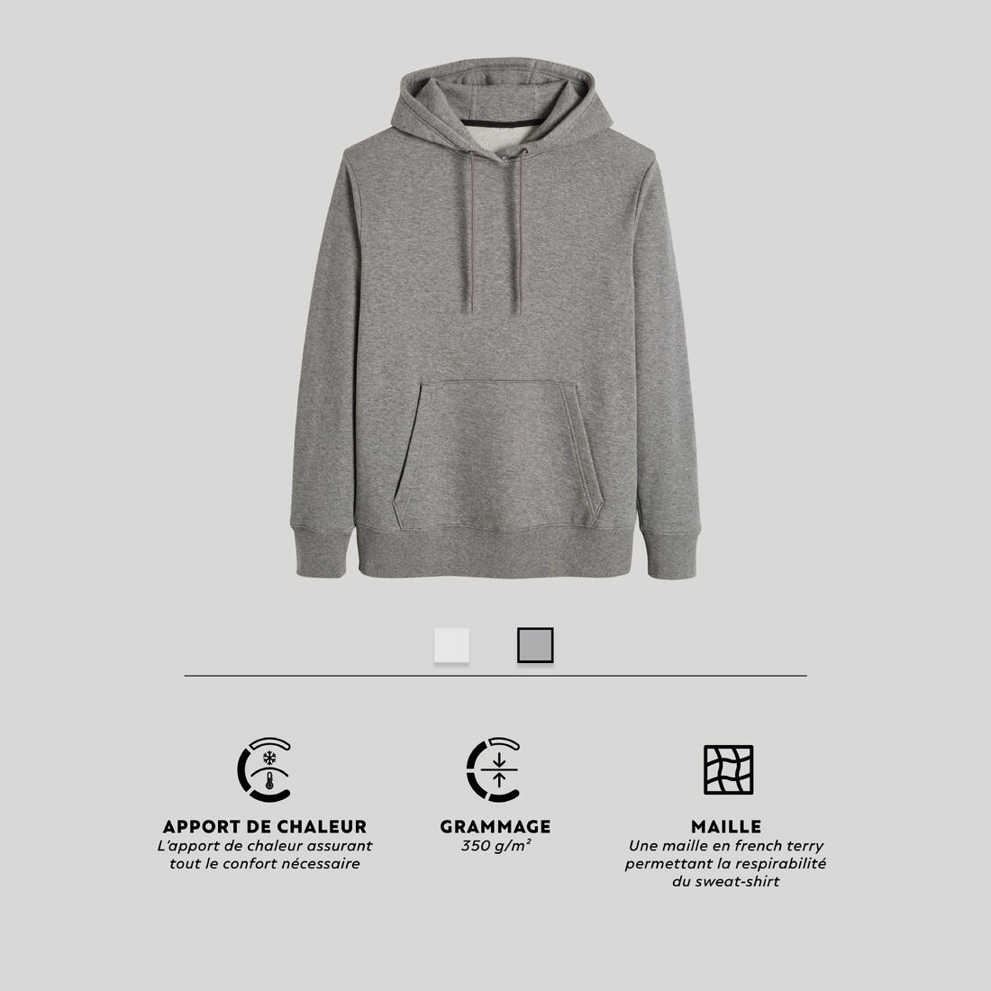 Nous avons pensé ce sweat pour en faire un vêtement qui dure dans le temps grâce à son design et son composant ! Sa coupe classique, ajustée juste comme il faut, est idéale pour mettre votre silhouette en valeur tout en conservant une liberté de mouvement. Sa capuche doublée au volume et à la tenue irréprochables se prête au jeu du style et de la praticité avec son cordon de serrage grâce auquel vous pouvez l'ajuster. Et que dire de sa poche ventrale emblématique des Hoodies !