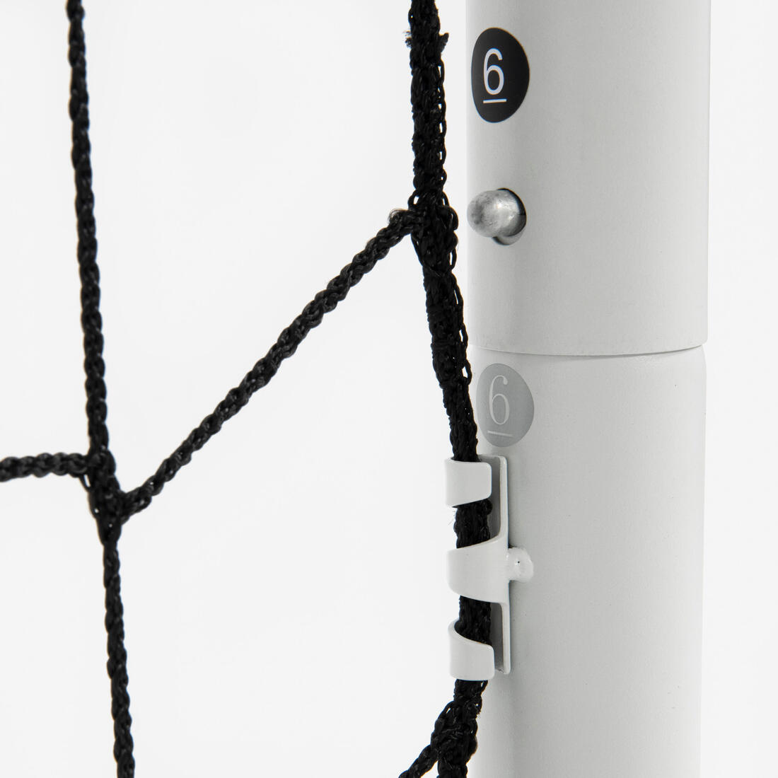 Ce but résiste mieux aux chocs grâce à ses renforts aux coins et aux lucarnes, ses attaches en métal et son tube rond plus solide. Il est aussi protégé contre la rouille pendant 5 ans grâce à un traitement anti-corrosion et une peinture plus résistante. Résultat : il supporte 3 fois plus de tirs que nos anciens modèles et tient au moins 5 ans en usage normal.