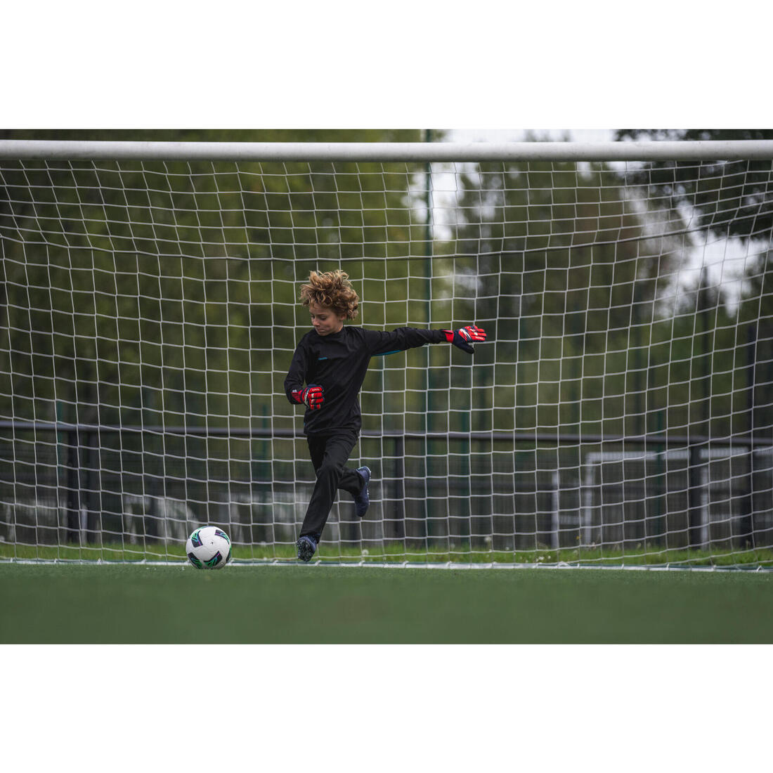 Gant de gardien de football ENFANT F100 SUPERESIST rouge/bleu