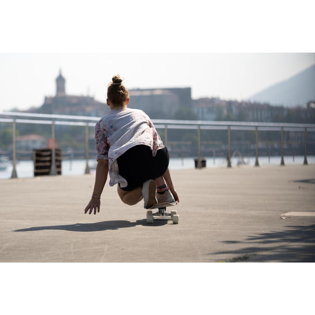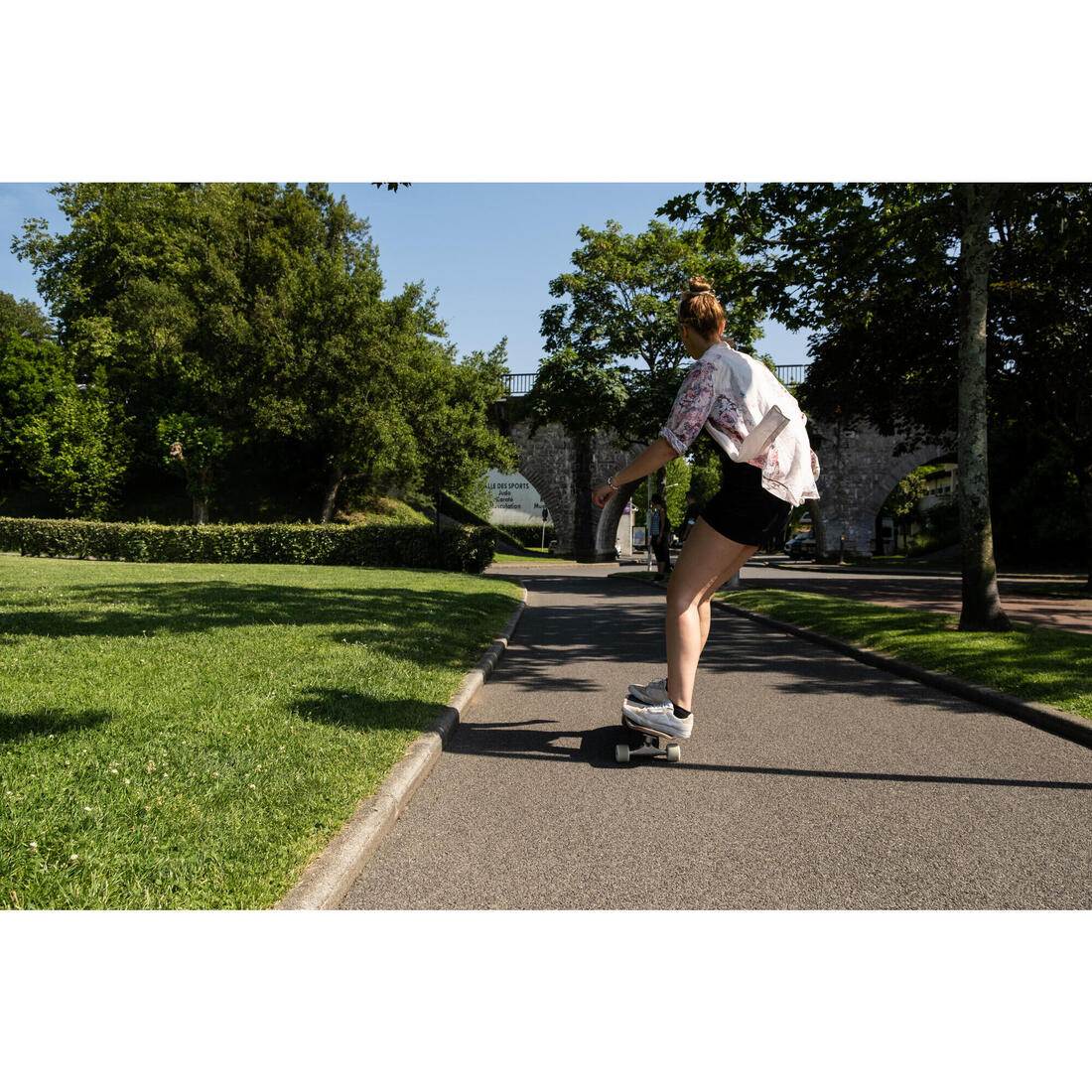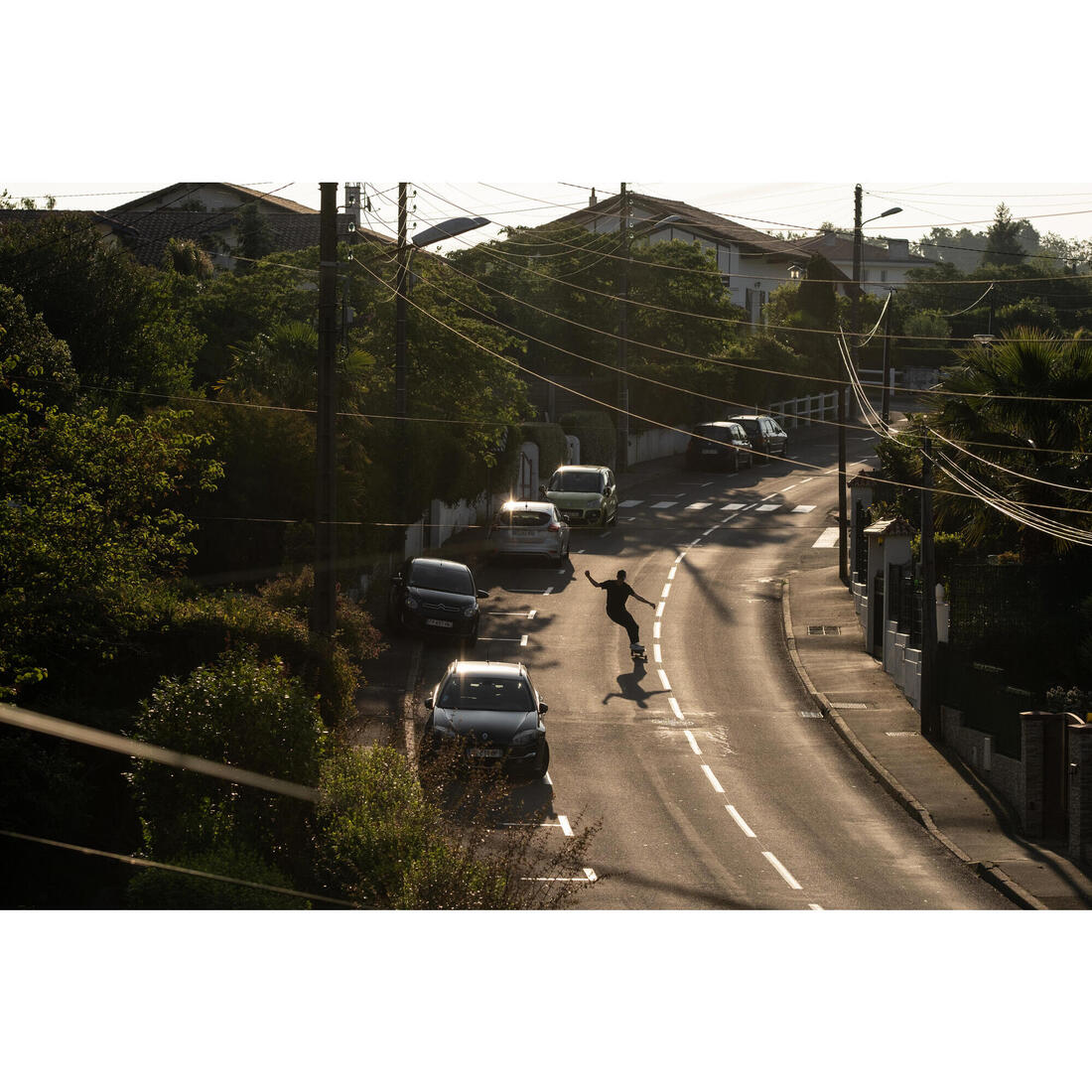 Ce longboard permet de faire des virages coupés et de prendre des courbes appuyées et fluides. Il convient aussi bien à la balade, qu’à la pratique dans un bowl ou un pump track.