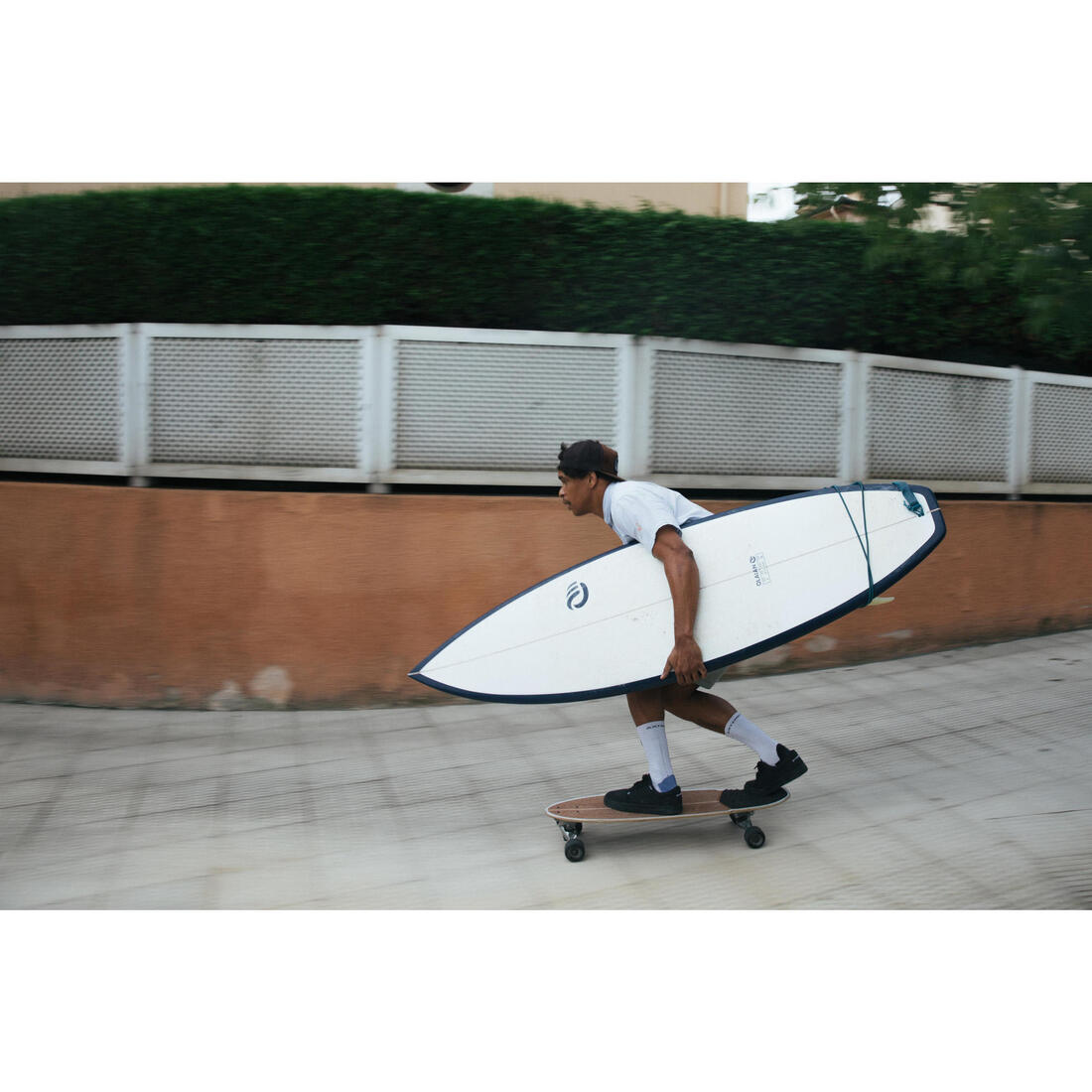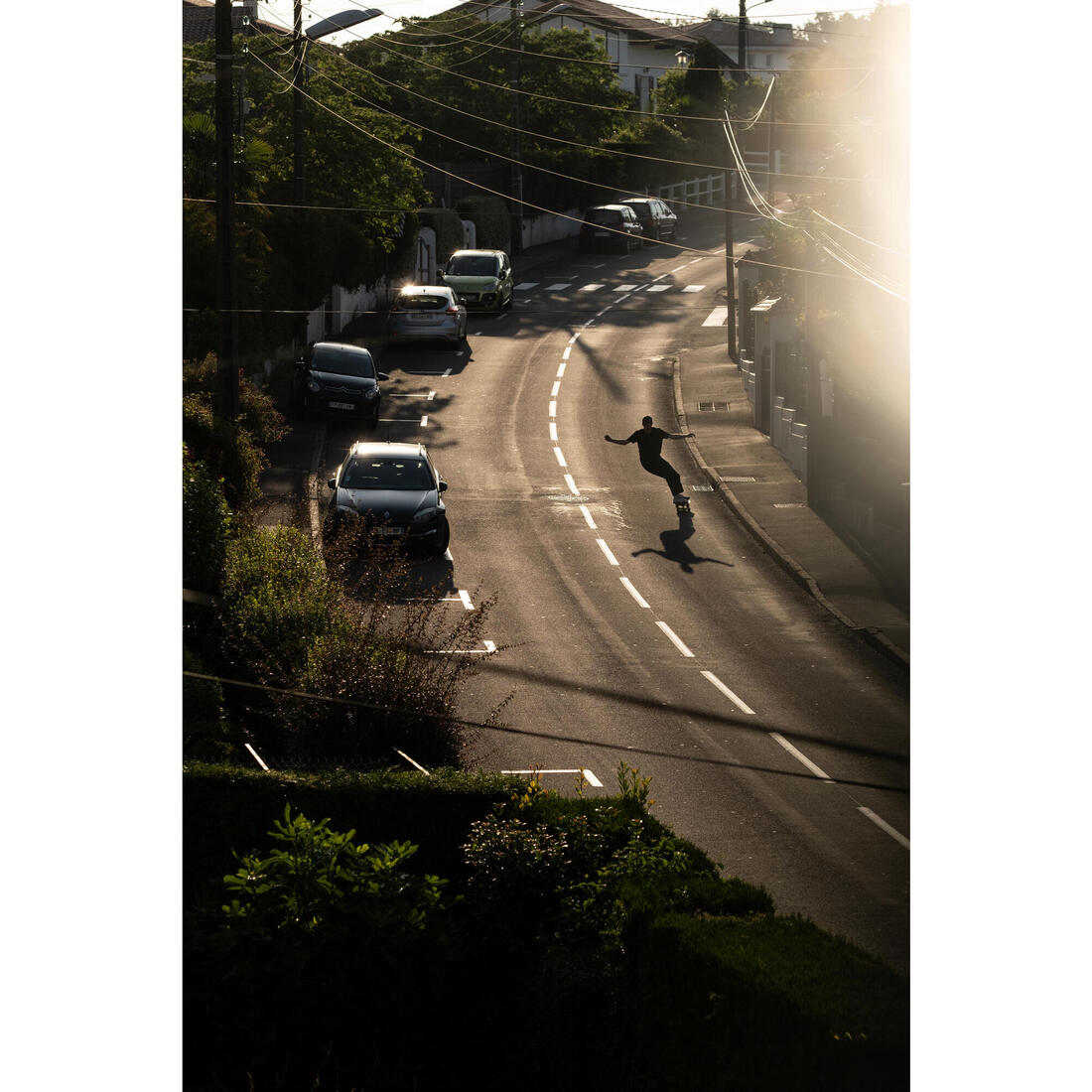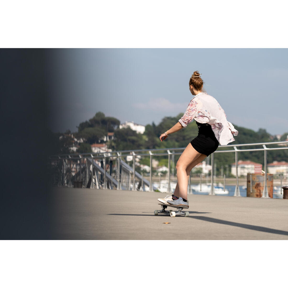 Ce longboard permet de faire des virages coupés et de prendre des courbes appuyées et fluides. Il convient aussi bien à la balade, qu’à la pratique dans un bowl ou un pump track.