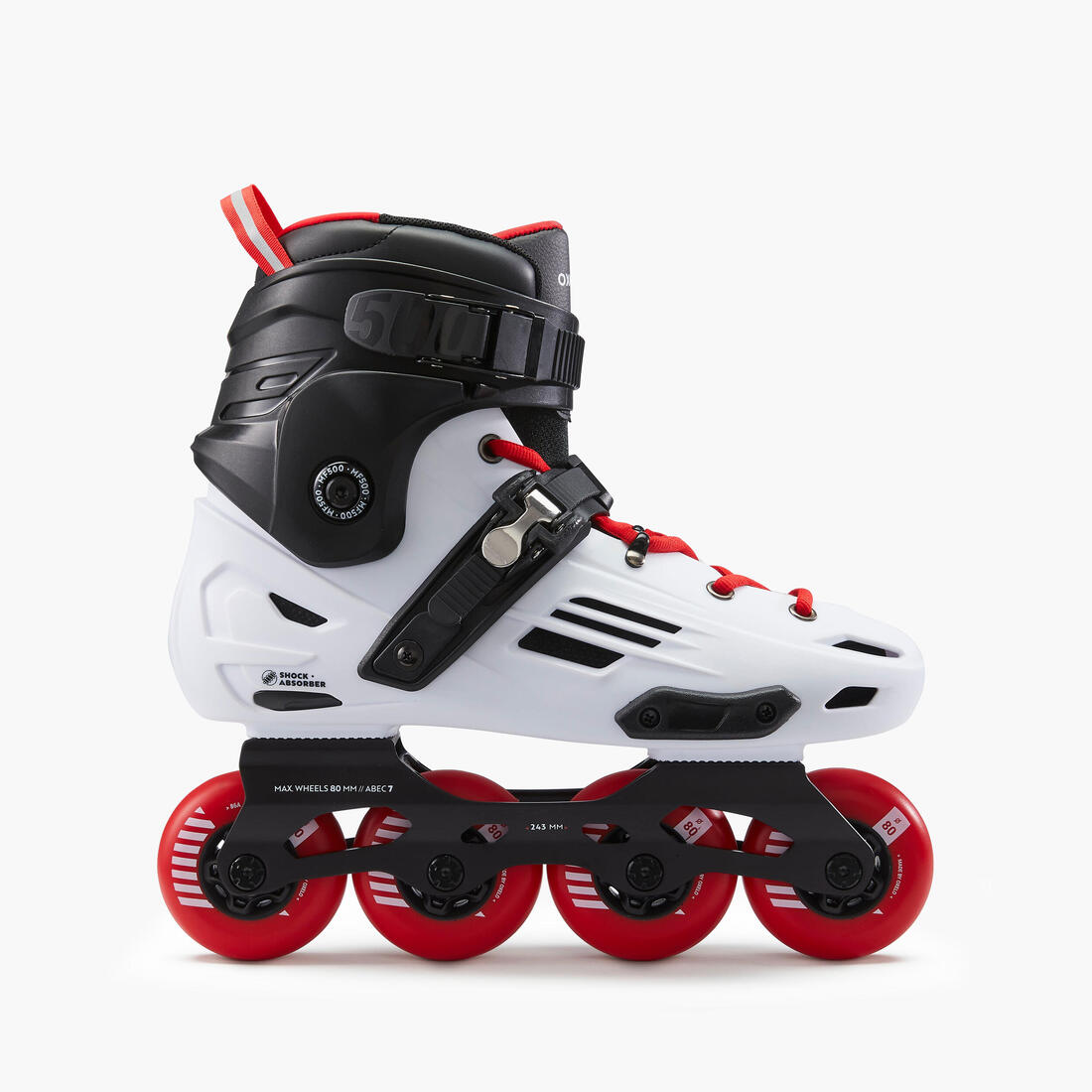Rollers polyvalents par excellence, ils assurent d'allier qualité de glisse (ABEC7 et roues 80mm ou 76mm sur les tailles 36 à 38), et extrême maniabilité ( platine courte et résistante pour supporter les différents sauts et slides). Deux tailles de roues différentes en fonction de la pointure : 36 à 38 : 76 mm / 39 à 46 : 80 mm afin d'assurer une excellente maniabilité à chacun. La platine peut se déplacer légèrement à gauche ou à droite pour un ajustement plus précis selon vos besoins.