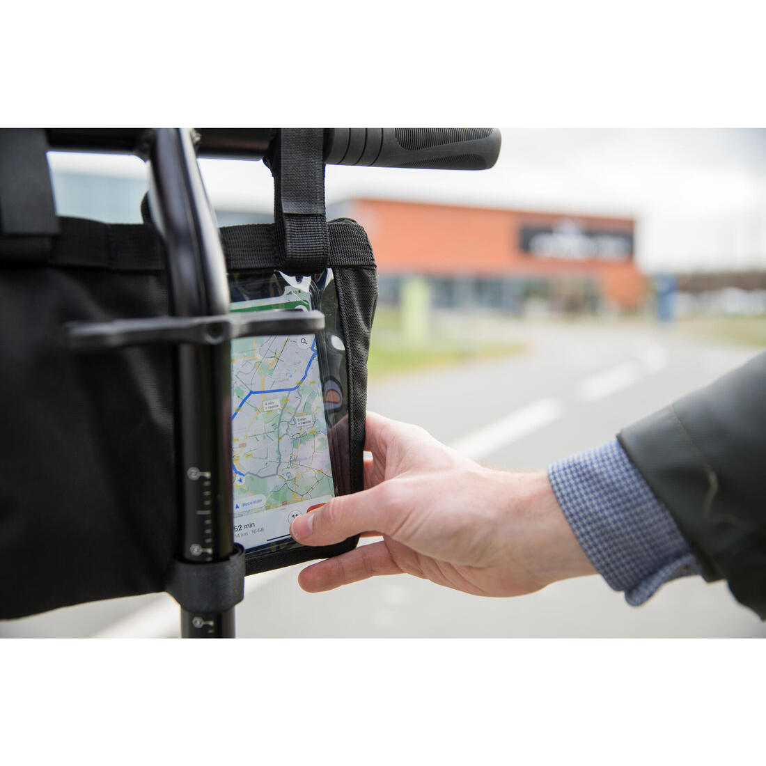 Une poche transparente située à l'arrière de votre sacoche vous permet de glisser votre téléphone et de l'utiliser en mode GPS. Cela vous permettra de connaitre votre direction sans risque de perdre votre téléphone.